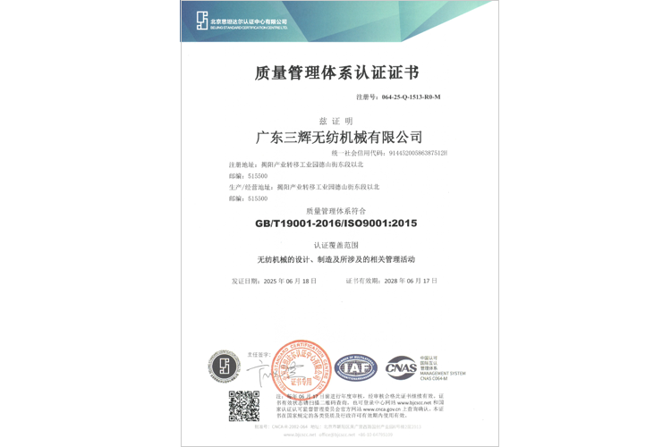 ISO質(zhì)量管理體系證書(shū)