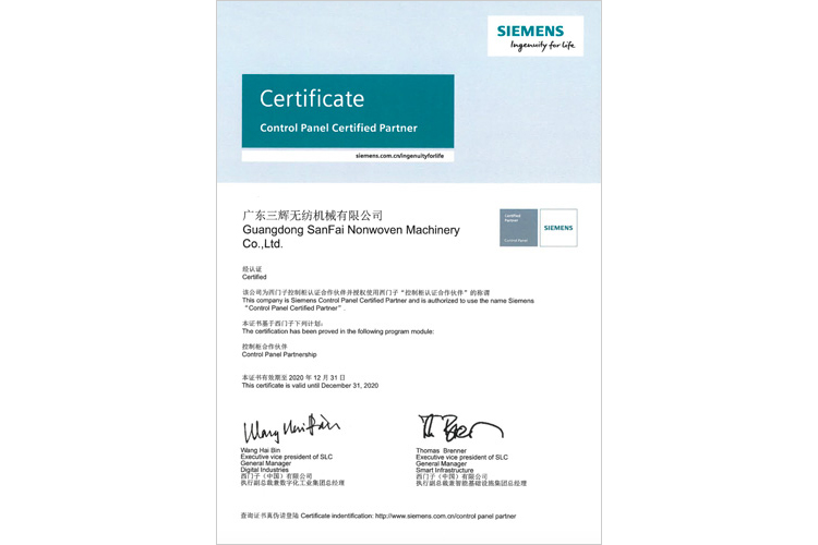 西門(mén)子控制柜合作伙伴證書(shū)